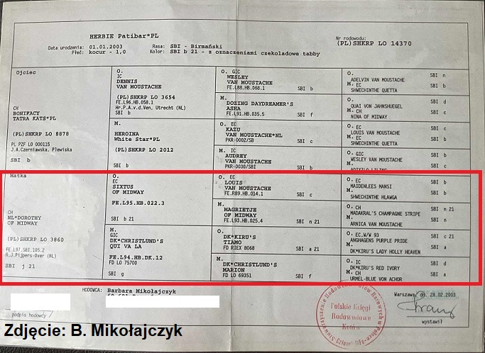 Dwa lata później Barbara Mikołajczyk z tej samej hodowli sprowadziła kolejną kotkę Dorothy (SBI j21).