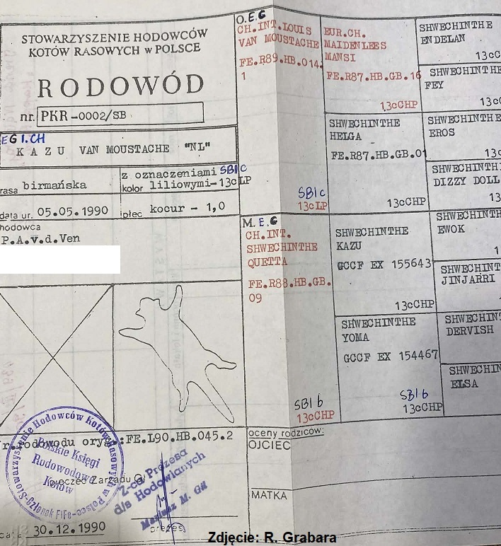 Dzięki Joke i Ruud Pijpers-Overom w grudniu 1990 roku do Polski przyjechała wspomniana kotka oraz jej przyszły koci małżonek – Kazu van Moustache(SBI c) z hodowli Petera van der Ven.