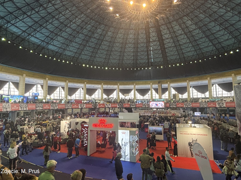 Mała przestrzeń między stolikami była mankamentem przy prezentacji większej stawki dużych ras. Na galeriach na piętrze rozmieszczone były stoiska z akcesoriami kocimi.